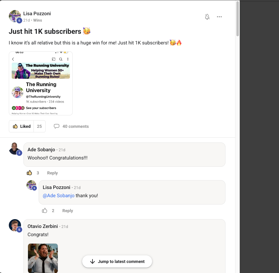 Lisa Pozzoni proudly celebrated reaching 1,000 subscribers on her YouTube channel, The Running University! It’s a personal milestone that marks major growth for her community of runners and a big step forward in her creator journey.